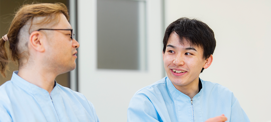 K.I すぐに思い浮かぶのは、雰囲気の良さ。みんな人柄が良くて、仲良しで、つねに助け合いながら作業をしている印象です。先輩・後輩の垣根がほとんどないから、人間関係でストレスを抱えることはないですね。